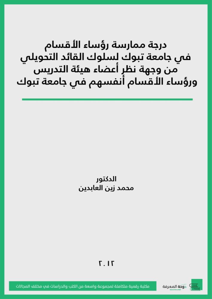 - العنوان: درجة ممارسة رؤساء الأقسام في جامعة تبوك لسلوك القائد التحويلي.