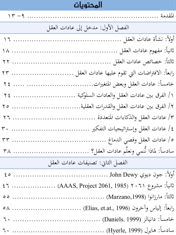 يستكشف كتاب عادات العقل والعملية التعليمية كيف يمكن لمؤسسات التعليم استثمار القدرات العقلية للطلاب بشكل أفضل، مع التركيز على تطوير المناهج والبرامج التعليمية لتعزيز التفكير النقدي والإبداعي وزيادة إنتاجية الطاقات الفكرية، إذ يعتبر الموهوبون رأس المال البشري لأي مجتمع, ويقدّم الكتاب فصولًا متكاملة عن مفهوم عادات العقل وتصنيفاتها، مع تطبيقات مستوحاة من التراث الإسلامي ومن منظور كوستا وكاليك، ويصنف ضمن أفضل كتب التربية الخاصة.